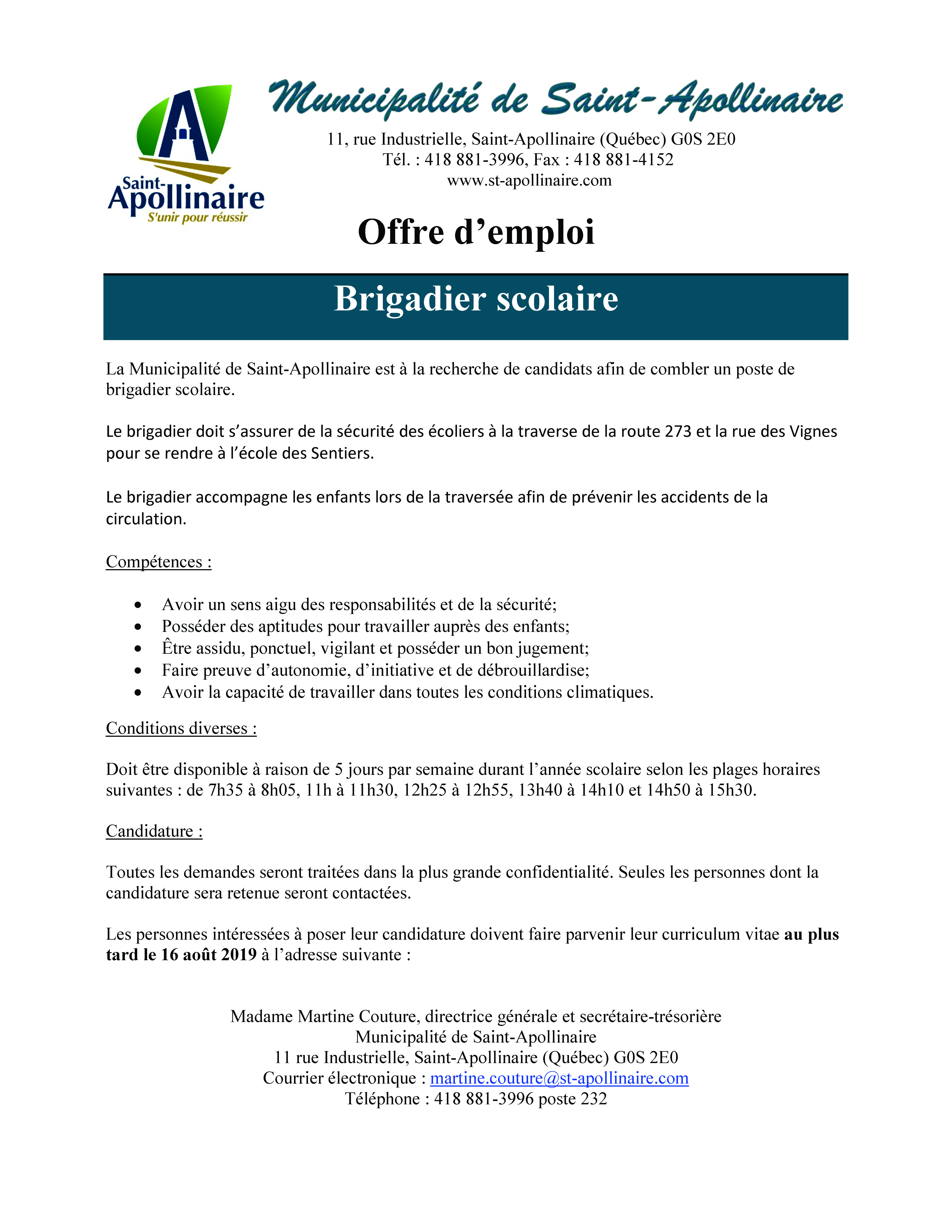 OFFRE D’EMPLOI – Brigadier scolaire